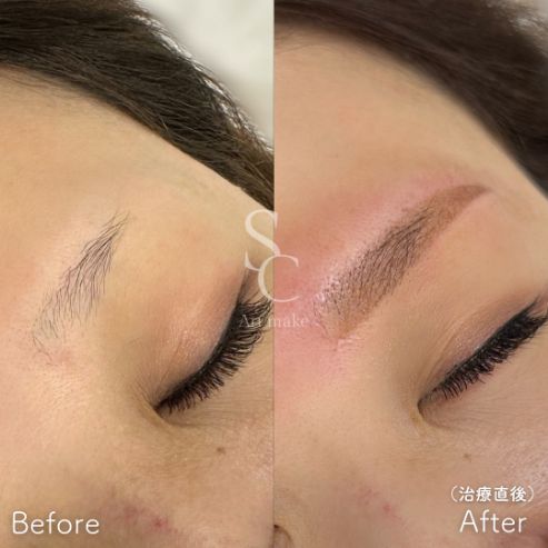 当院では手彫りとマシン彫りをデザインにより使い分け、毛の生えていない箇所にも一本一本、眉を書き足すようにオリジナルの手法でより自然で立体的な眉に仕上げることが可能です。